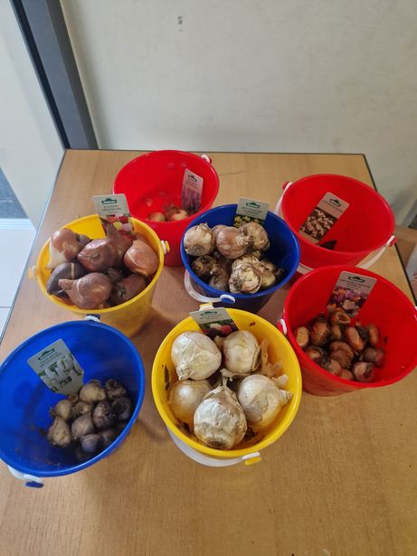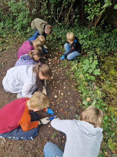 Am Freitag, den 27.09.2024, stand der Tag der Demokratie an unserer Schule an. Die Grundschüler verbrachten den Vormittag damit vieles über Demokratie, Anderssein, Rassismus und Courage zu erfahren. Es wurde berichtet, diskutiert, gebastelt und gemalt. Einige Schülerinnen und Schüler der vierten Klassen hatten an diesem Tag eine besondere Aufgabe. Sie durften mit Frau Heier im Schulgarten unter dem Motto "Gemeinsam wachsen" Frühblüherzwiebeln einpflanzen. Dort können nun alle Schülerinnen und Schüler in den kommenden Jahren Narzissen, Hyazinthen, Tulpen und Schneeglöckchen bestaunen und sich immer wieder an diesen besonderen Tag zurück erinnern.