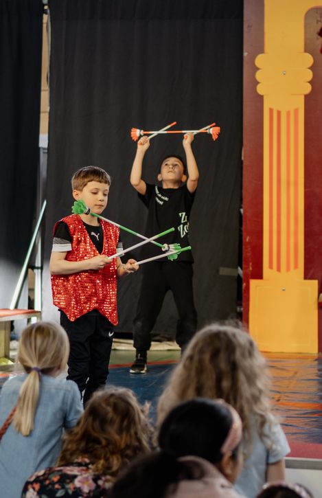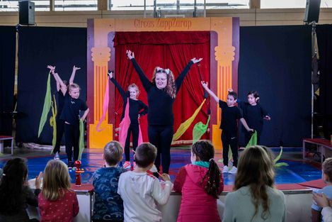'MENGE FREI' hieß es vom 19. bis 24.02.2024 in unserer Grundschule. In dieser Woche lernten die Schülerinnen und Schüler nicht nur allerhand Kunststücke, Zaubertricks und Showeinlagen, sondern wuchsen alle ein großes Stück über sich hinaus und entdeckten Talente, die vorher noch verborgen lagen. Die insgesamt vier Vorstellungen am Wochenende waren das absolute Highlight, rundeten die rundum gelungene Woche ab und ließen die Augen der Kinder noch heller erstrahlen. Es wurde performed, applaudiert, gejubelt und mit den Artisten mitgefiebert. Ein paar dieser unvergesslichen Momente möchten wir hiermit mit Ihnen teilen.