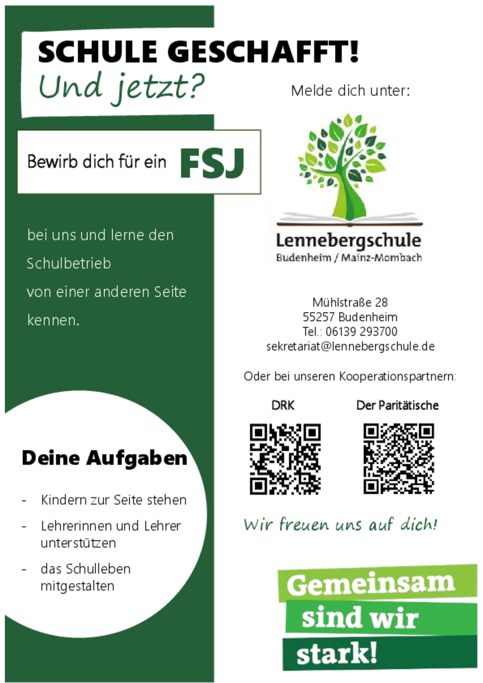 Bewirb dich für ein FSJ an unserer Schule!