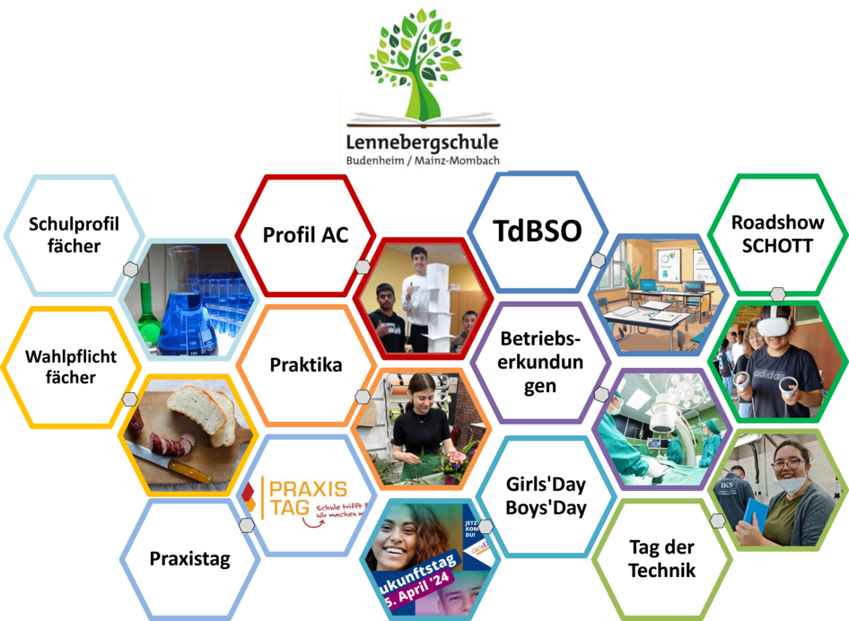 Die Lennebergschule bietet ein breites Angebot im Bereich der Berufsorientierung an. Schwerpunkte liegen dabei auf einem frühen Einstieg in die berufliche Orientierung, insbesondere durch das Kennenlernen und Erfassen der eigenen Interessen, Fähigkeiten und Fertigkeiten der Schülerinnen und Schüler. Uns ist es wichtig, den Kindern und Jugendlichen möglichst früh verschiedene Bereiche aufzuzeigen und ihnen die Möglichkeit zu geben, die richtigen Themen und Berufsfelder für sich zu finden. Ein weiterer wichtiger Bestandteil unseres Angebots ist die Zusammenarbeit mit lokalen Unternehmen und Institutionen. Diese Partnerschaften ermöglichen es uns, unseren Schülerinnen und Schülern realistische Einblicke in verschiedene Berufe und Branchen zu bieten. Zudem unterstützen wir sie bei der Erstellung von Bewerbungsunterlagen und bereiten sie auf Vorstellungsgespräche vor. Hierbei unterstützen insbesondere unsere Klassenleitungen, die Lehrkräfte der Wahlpflichtfächer und unsere Jobfüxin Frau Kalisch.